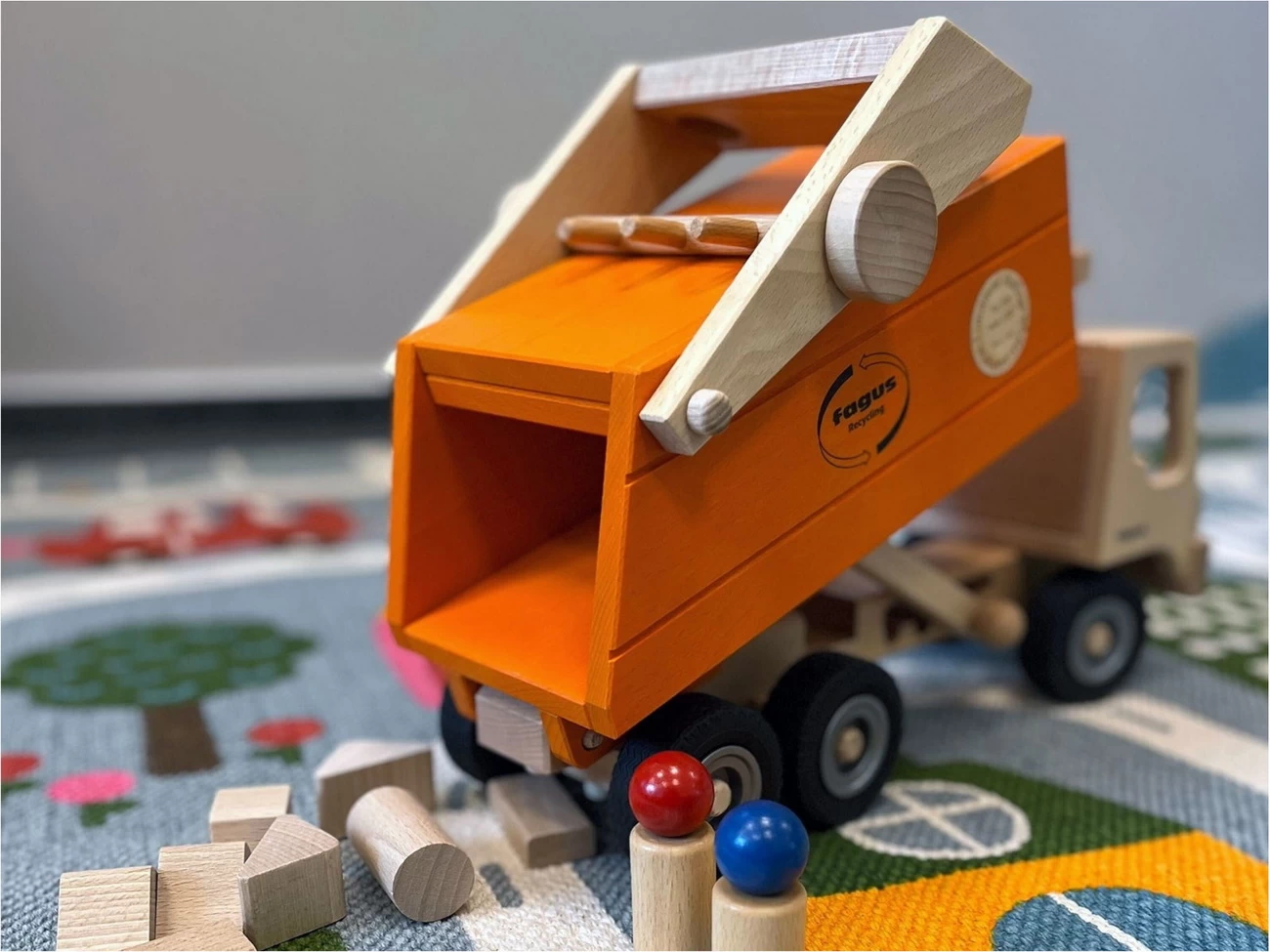 Für leuchtende Kinderaugen ist der fagus-Müllkipper ein echtes Schmuckstück unter den Holzspielzeugen. Mit seiner beachtlichen Länge von 43 cm und drei Achsen bahnt er sich seinen Weg durch die Ortschaften und Städte und sorgt überall stets für Ordnung und saubere Mülltrennung. Nach dem Vorbild der realen kommunalen Entsorgungsfahrzeuge muss der fagus-Holzmüllkipper seine Funktionen in keiner Weise verbergen.